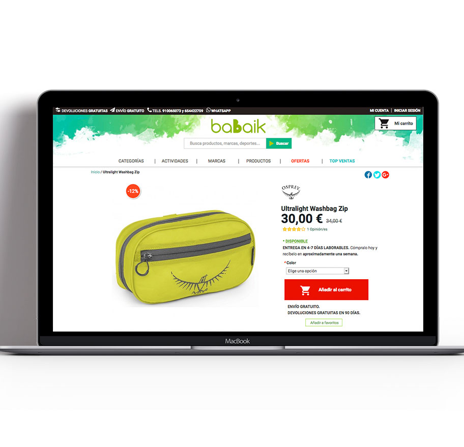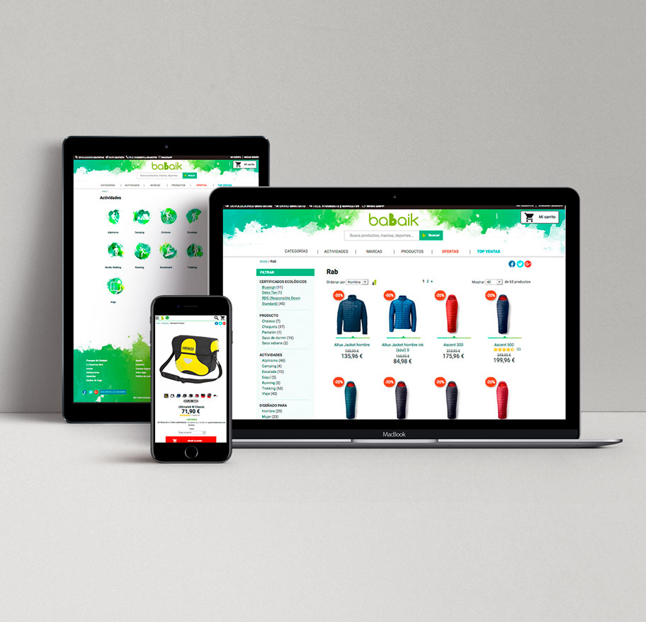 Tienda on-line de material de deportes outdoor. Se buscaba un diseño limpio, vibrante y muy usable.